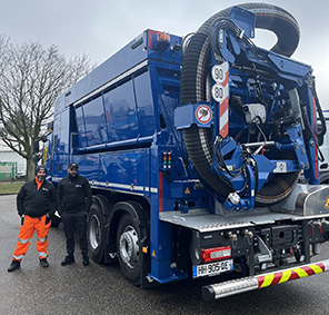 RSP en France, ainsi que Christophe BOUVARD de chez Mercedes, le fabricant du porteur, étaient présents pour la prise en main du matériel (châssis, moteur, cabine) et également Gregory DEPERRAS, nouveau conducteur de l'aspiratrice-excavatrice , récemment embauché et déjà expérimenté sur cette machine depuis plusieurs années, pour partager son expertise.